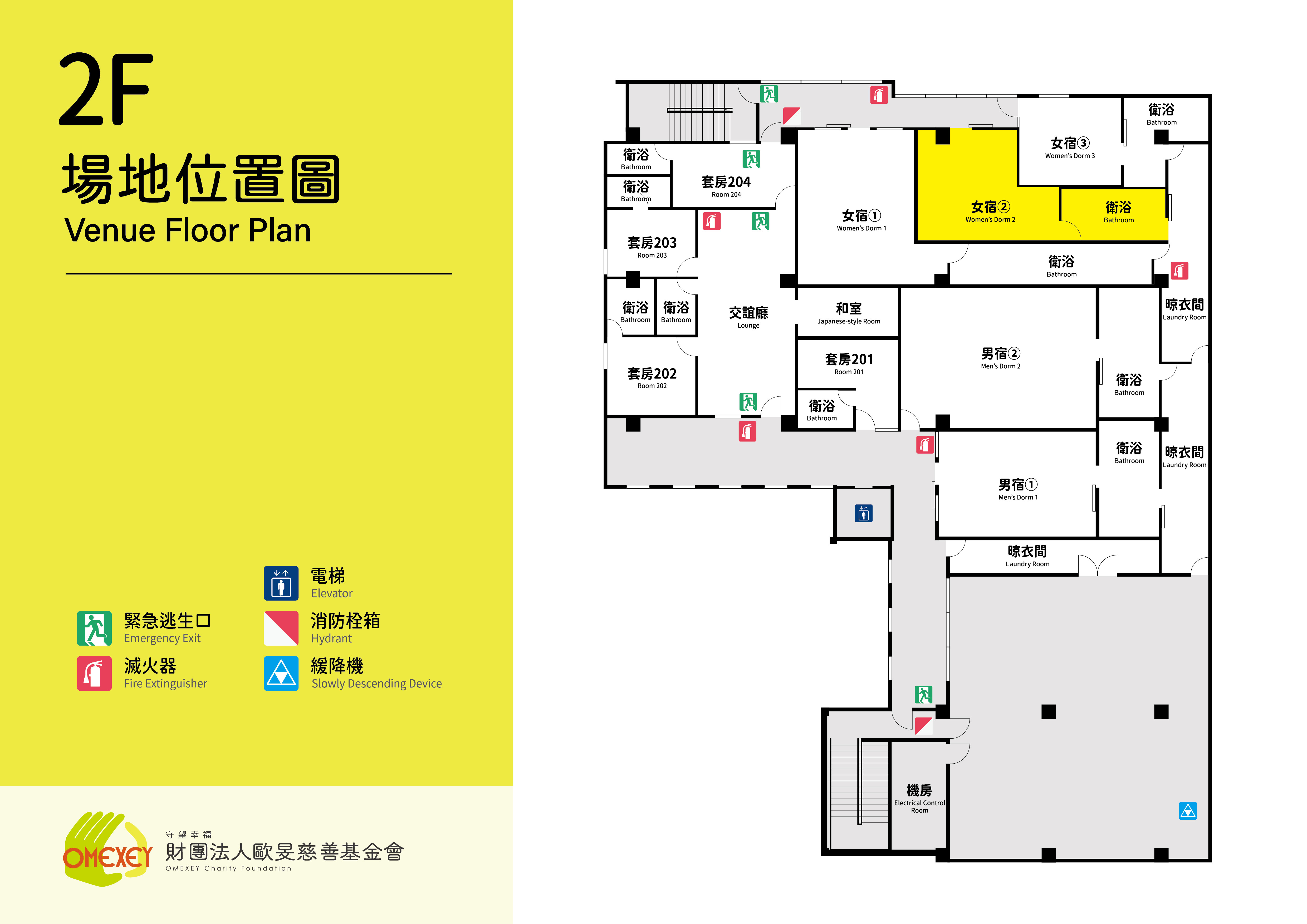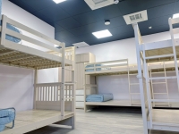 空間鋪設木質地板,整潔明亮,設有上下舖床位。房內配有冷氣與衣櫃,並設有二間廁所與二間淋浴間,能有效分流使用,維持良好衛生與生活品質。此外,公共區域設有洗衣機、洗衣槽、晾衣間與飲水機,方便住宿者日常使用。