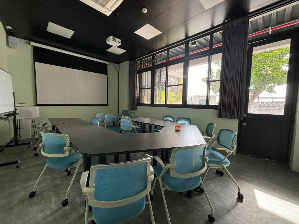 本教室規劃精緻、機能完善,教室配備梯形桌與座椅,最多可容納15人,支持多樣化的座位安排方式,提升學習與互動效率。空間採光良好,設有窗簾,便於依照需求調整光線,提供舒適穩定的教學與討論空間。